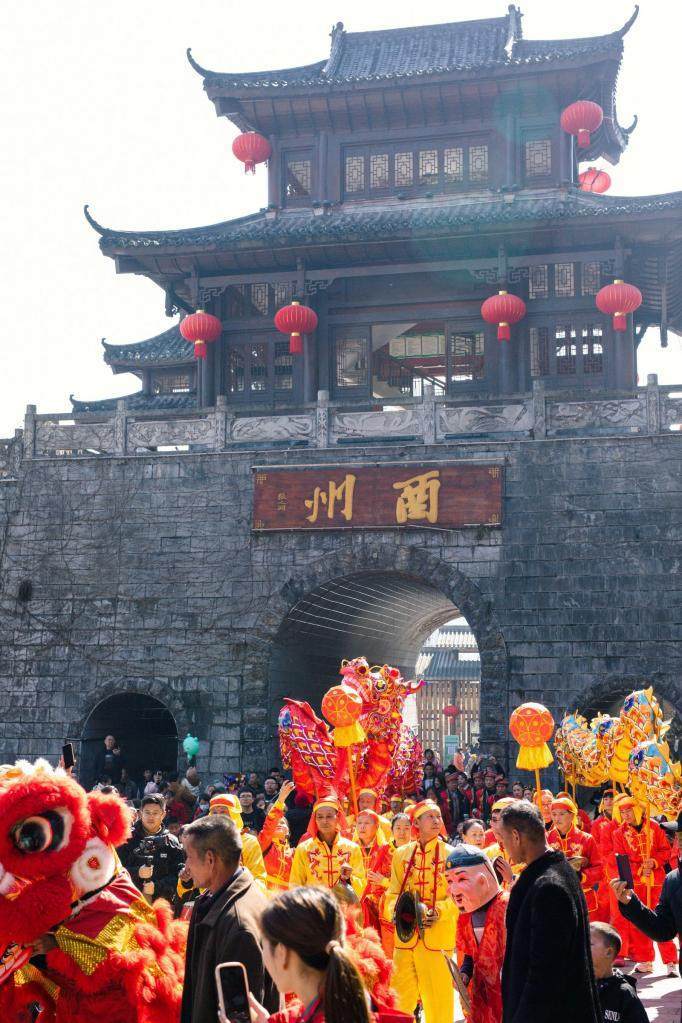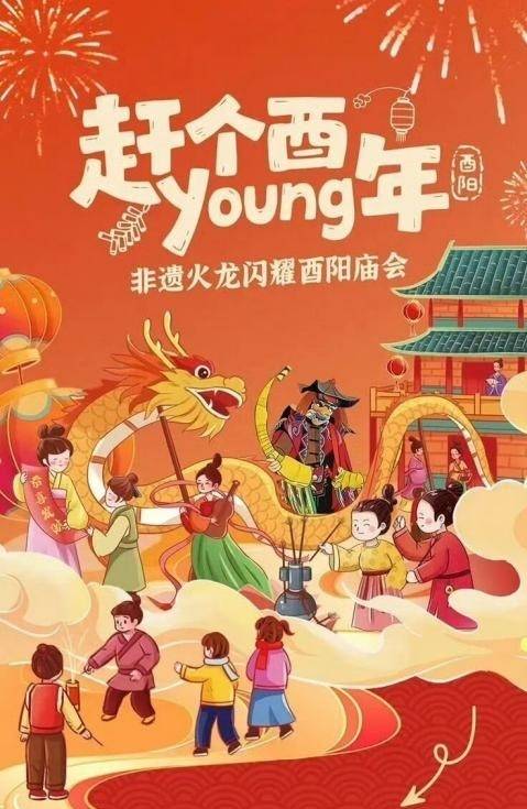 “赶个酉YOUNG年·新春特色庙会”主题活动,酉阳文旅推出了三大主题新春庙会:桃花源与酉州古城主打土司庙会,融合非遗代表性项目火龙、土家摆手舞、古风NPC互动;龚滩古镇推出以飞马迎新和烟花秀为主的川主庙会;叠石花谷傩神庙会的猜拳赢花币和土家相亲则备受关注。